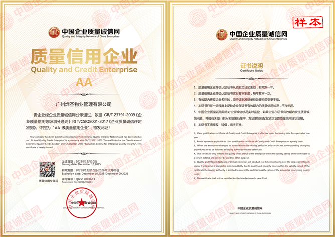 | 企业名称:广州烨圣物业管理有限公司 | 评定日期:2025-12-10 |